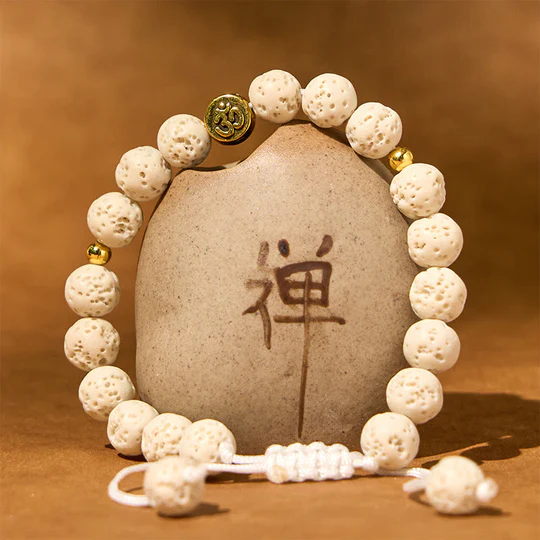 Bodhi Stones White Lava Rock Om Symbol Healing Calm Bracelet