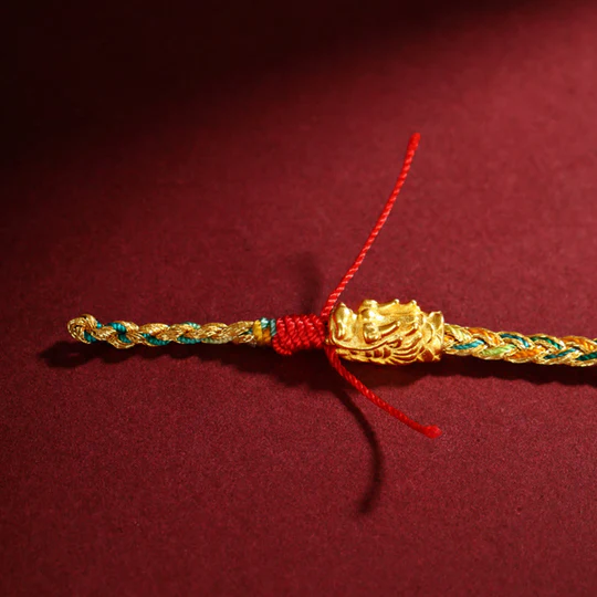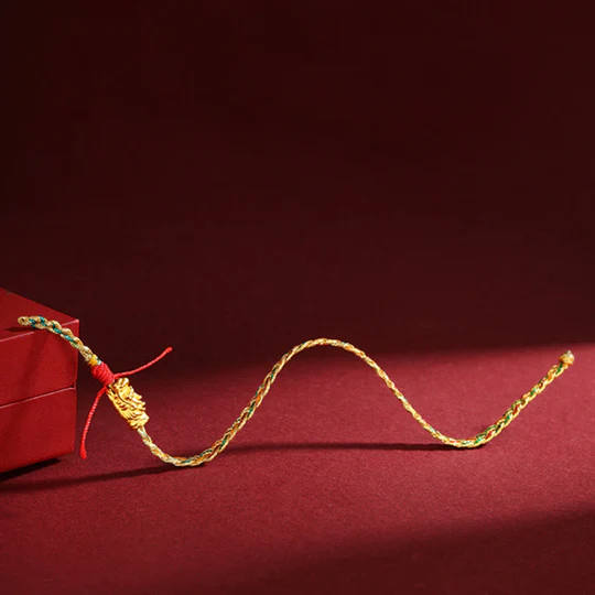 This vibrant bracelet is carefully crafted with a durable red thread that signifies good fortune.