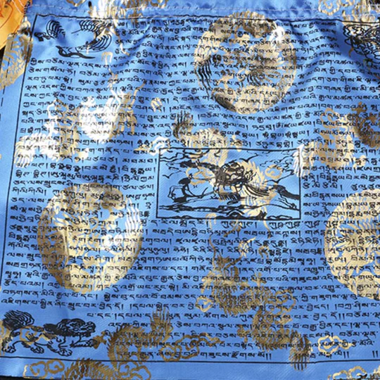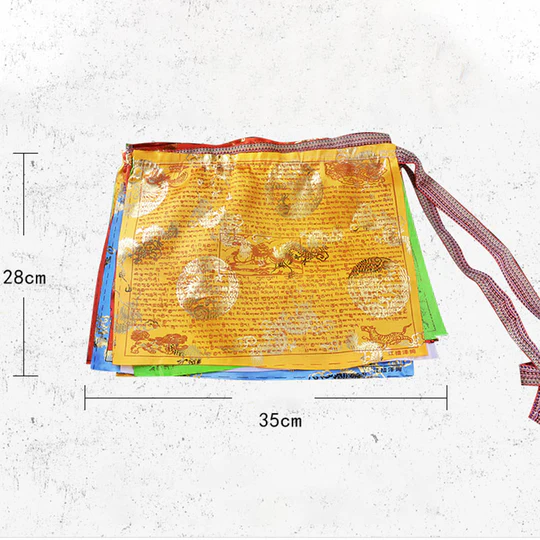 - Each flag features a large variety of prayers surrounding the center image of lungta, a Windhorse. Lungta is also the Tibetan word for ‘prayer flag’. Circulates a feeling of Harmony and increases the Spiritual Atmosphere. It Brings Spiritual Vibration carried by the wind across the house.