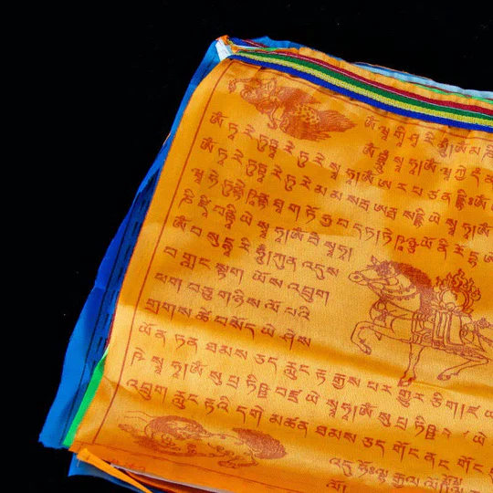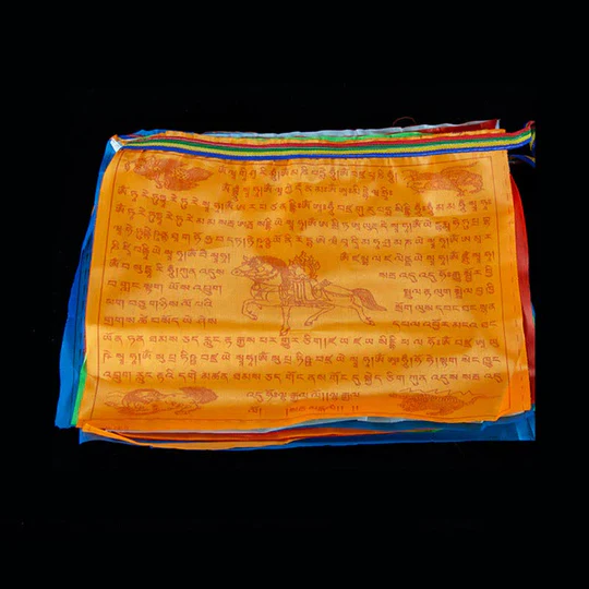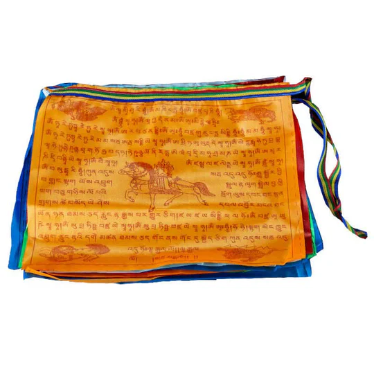 • Each flag features a large variety of prayers surrounding the center image of lungta, a Windhorse. Lungta is also the Tibetan word for ‘prayer flag’. Circulates a feeling of Harmony and increases the Spiritual Atmosphere. It Brings Spiritual Vibration carried by the wind across the house.
